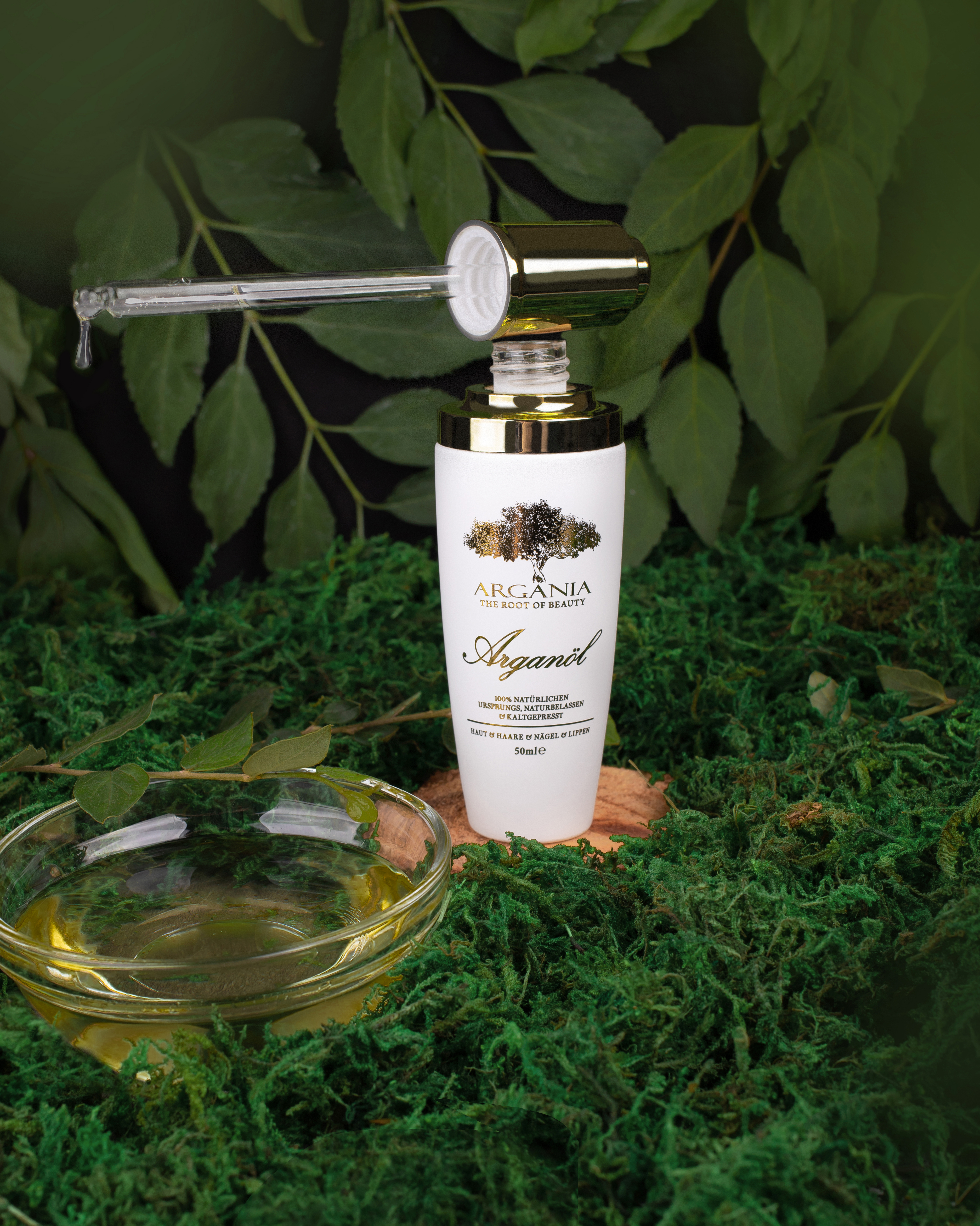 Erlebe die luxuriöse Pflege unseres Arganöls, gewonnen aus den kostbaren Kernen der Arganbäume Marokkos. Unser Arganöl, erhältlich in einer praktischen 50ml Flasche, bietet dir die Wahl zwischen einem edlen Pumpspender oder einer präzisen Pipette. Reich an natürlichen Antioxidantien und essentiellen Fettsäuren, nährt und schützt es deine Haut und Haare intensiv. Perfekt für die tägliche Anwendung, schenkt es deinem Teint strahlende Frische und deinem Haar unwiderstehlichen Glanz. Entdecke die Wurzel der Schönheit mit Argania - 50ml pures Wohlbefinden.